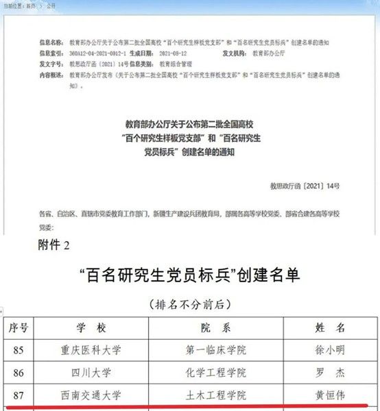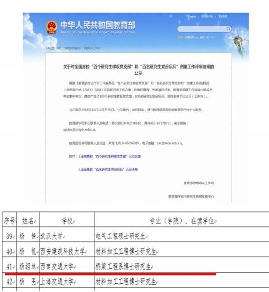 学生获评全国高校百名研究生党员标兵