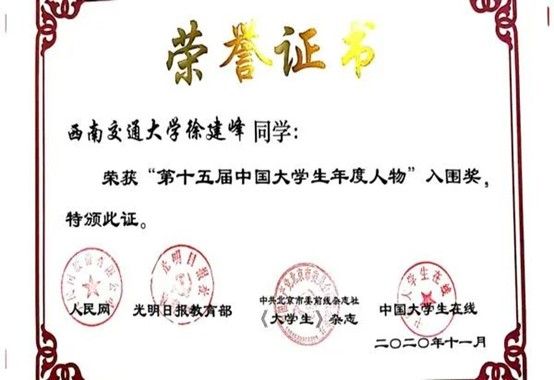 学生获“中国大学生年度人物”入围奖