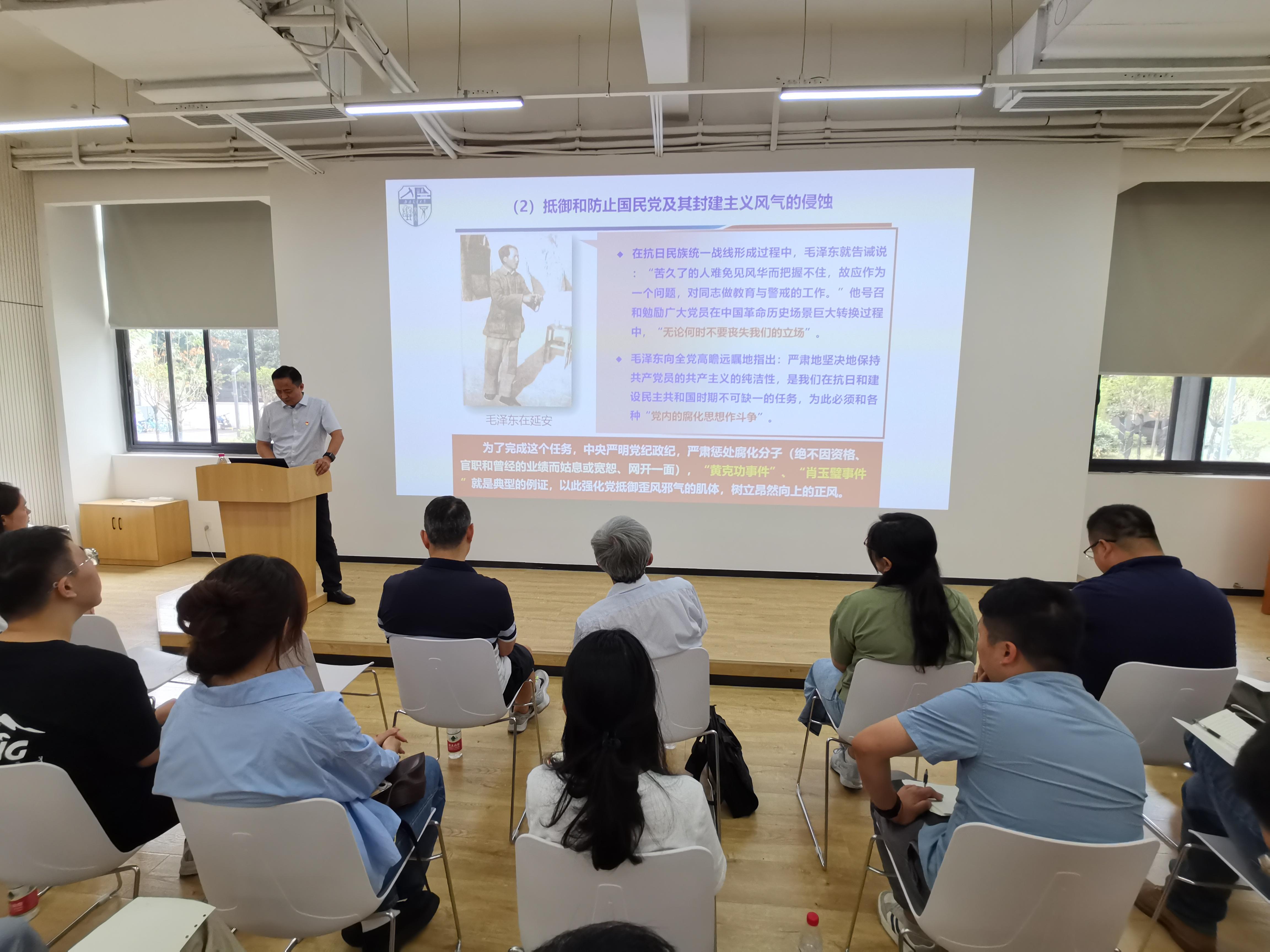 于九里工业中心G座一楼报告厅开展《学习贯彻习近平新时代中国特色社会主义思想主题教育--延安精神专题》主题教育党课。党课由学院党委书记高平平主讲,学院中心组,教职工党支部书记、委员,学生党支部书记、委员参加了本次党课。学校主题教育监督指导组第六组组长谭永东院长莅临指导。党课由学院党委熊麟老师主持。