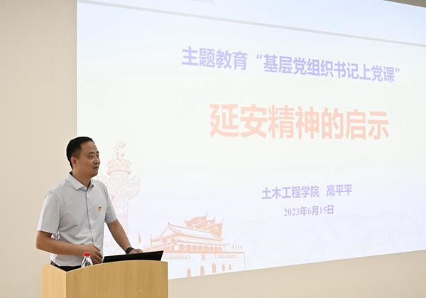 此次党课主要围绕“延安精神的启示”展开,高平平书记从“新一届中共中央常委集体赴延安”这一事件切入,强调了延安这一革命旧址见证了我党领导中国革命、探索马克思主义中国化的光辉历程,其中诞生的延安精神更是培育了一代又一代中国共产党人,是我们党的宝贵精神财富。接着,高平平书记从历史出处、历史评价、历史影响等方面对比了“延安作风”和“西安作风”的差异,指出我们要用延安精神打败西安精神,中国的希望在延安。最后,高平平书记通过典型的历史例证向在座的各位同学和老师详细介绍了延安作风的形成过程以及延安精神所带给我们的启示,并号召在座的师生要赓续传承好延安精神,抓好作风建设,抓好基础性工作,让土木学院发展的基石更加稳固!
