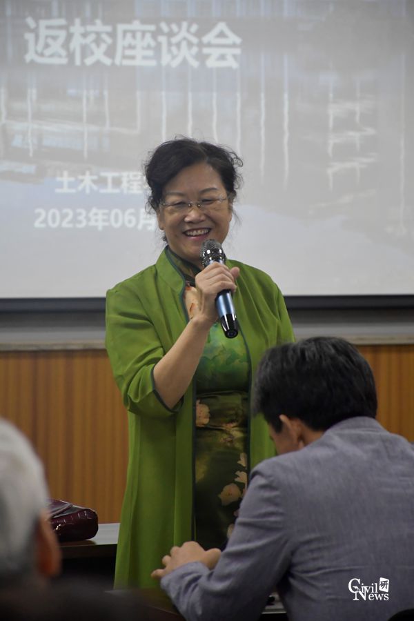 车小洁副书记发表讲话,感谢校友们对母校和学院建设与发展的支持与关心,并简要从交大土木学院的历史沿革、学科和专业分布、教学平台、研究方向、国际学术交流与合作等方面,向校友们进行了简洁而清晰的介绍,最后,再次向各位校友的到来表示热烈的欢迎。