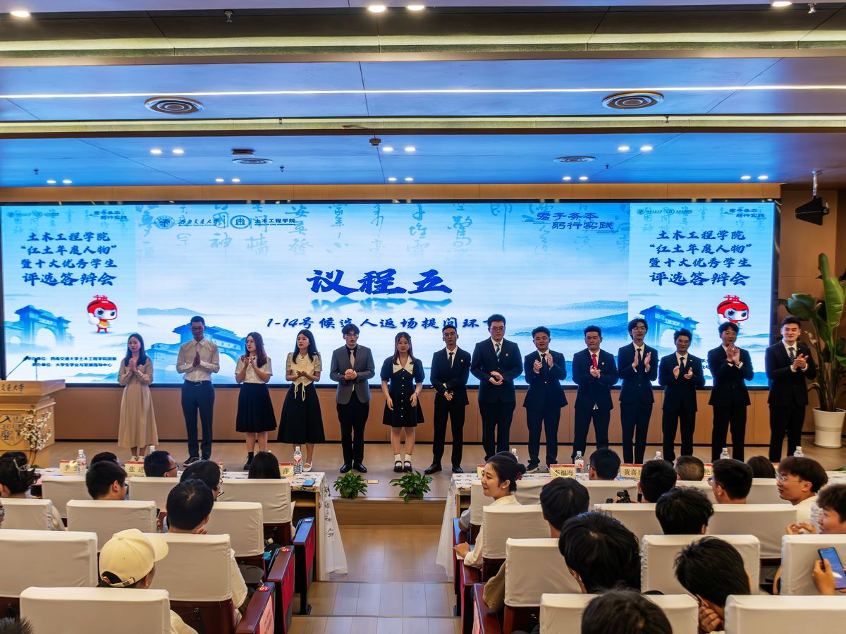 扬“四红”精神,展土木风采。在此次的“红土年度人物”暨十大优秀学生答辩评选会上,候选人们用实际行动践行以青春之我、奋斗之我,为民族复兴铺路架桥,为祖国建设添砖加瓦的使命。新时代的土木青年都将以他们为榜样,秉承“竢实扬华,自强不息”的交大精神,在推进强国建设、民族复兴伟业中展现青春作为、彰显青春风采、贡献青春力量,奋力书写为中国式现代化挺膺担当的青春篇章。