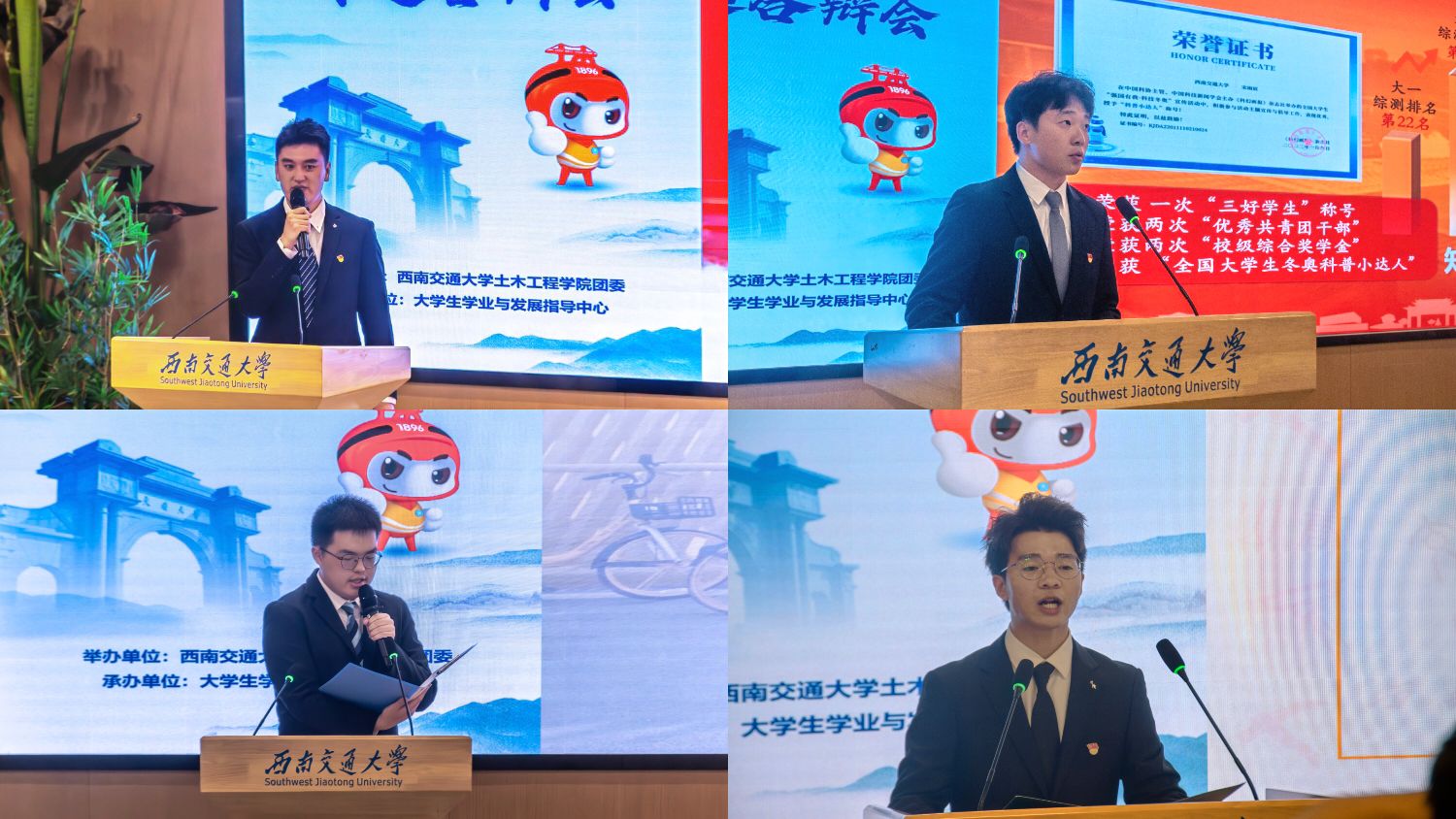 来自土木2021-06班的赖鑫积极参与了多个课题项目,涉及深度学习在土木工程和网络安全领域的应用,其论文录用及在投论文达7篇,其中包含CCF推荐A类会议等高质量论文;来自造价2021-02班的丁嘉璐积极参与各类志愿服务,志愿服务时长共计801h,获四川省三星级志愿者和西南交大五星级志愿者;来自造价2021-02班的程田自主学习竞赛相关软件,对陌生的领域逐步探索,获得“茅以升公益桥——小桥工程”创新设计大赛特等奖等共9项获奖;来自土木2021-15班的肖岚芝在课堂上认真听讲,课下积极复习。采取主动式学习,平均图书馆日常时长8h+。连续两年获得了国家奖学金,并且获得感恩近现代科学家奖学金。