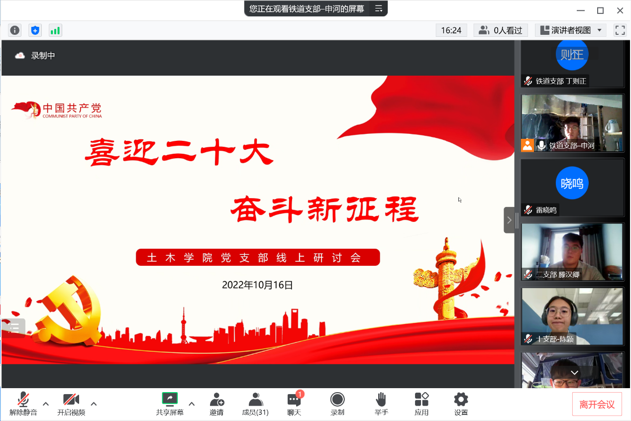 为深入学习贯彻习近平新时代中国特色社会主义思想,第一时间学习领悟中国共产党第二十次全国代表大会精神,10月16日下午4时,由土木学生铁道党支部主持,色情av影片