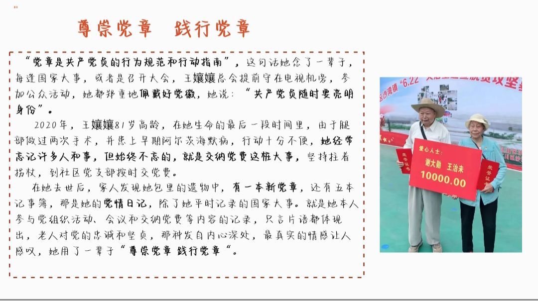 首先,李彦虎同志以共产党员王治未老人的事迹告诉我们要尊崇党章,践行党章。