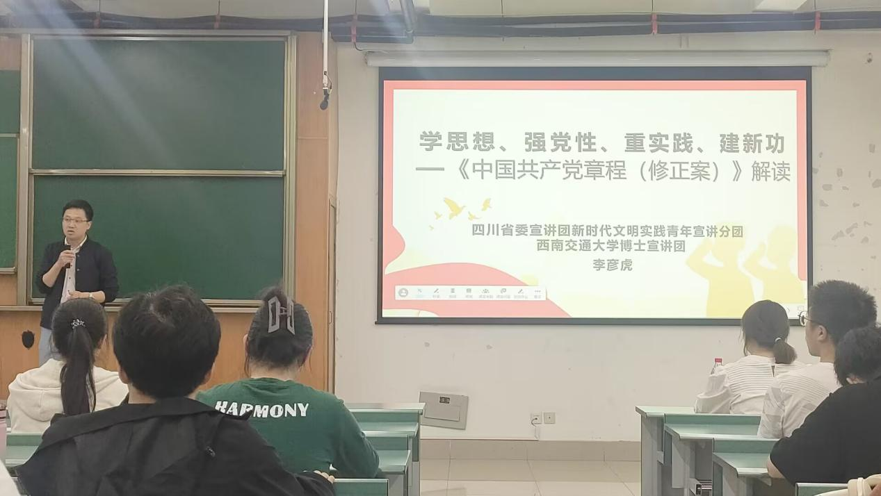接着,李彦虎同志发表了以“学思想、强党性、重实践、建新功——《中国共产党章程(修正案)》解读”为主题的宣讲。