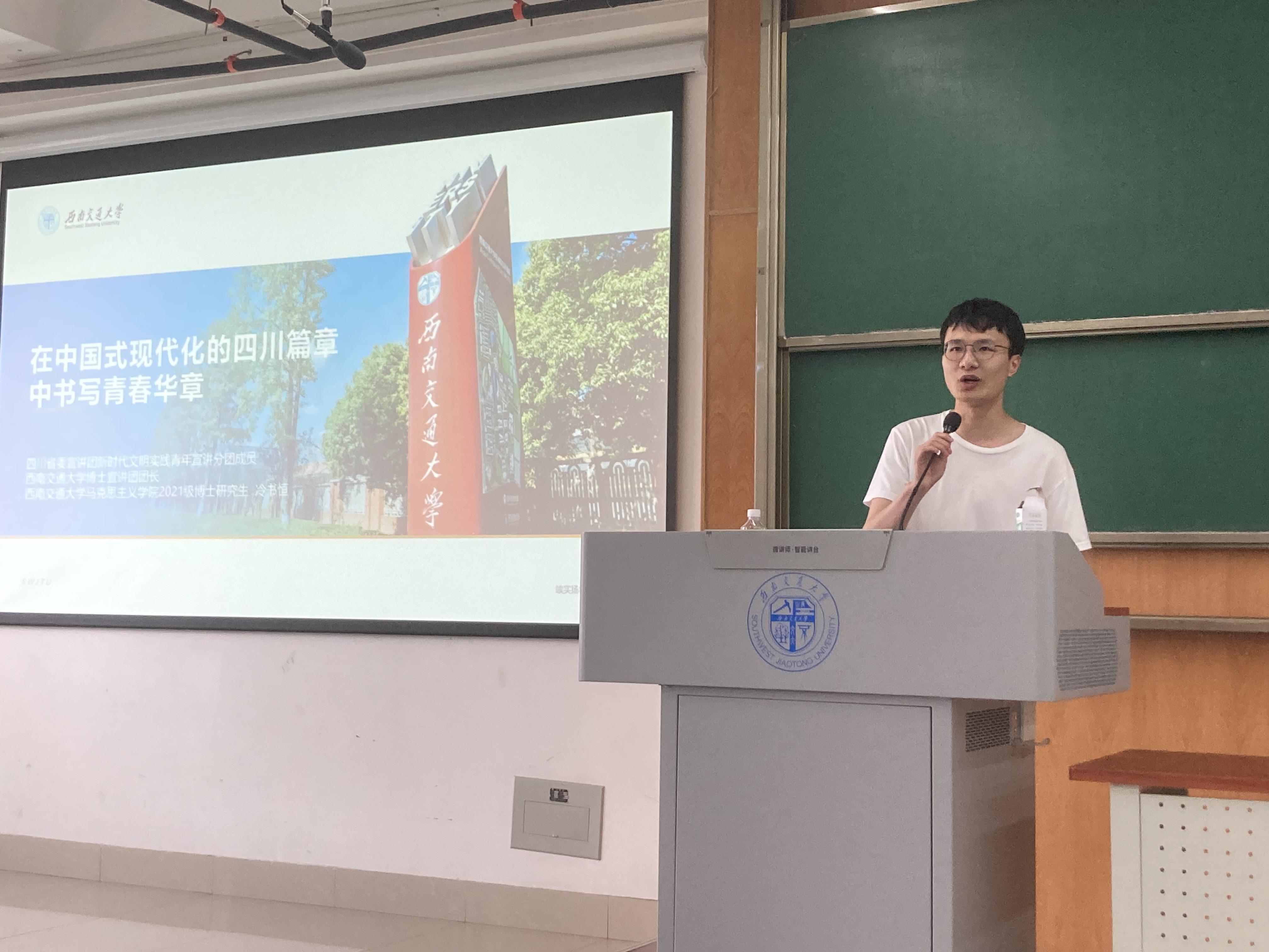博士宣讲团成员——马克思主义学院冷书恒博士发表了“在中国式现代化的四川篇章中书写青春华章”为主题的宣讲。