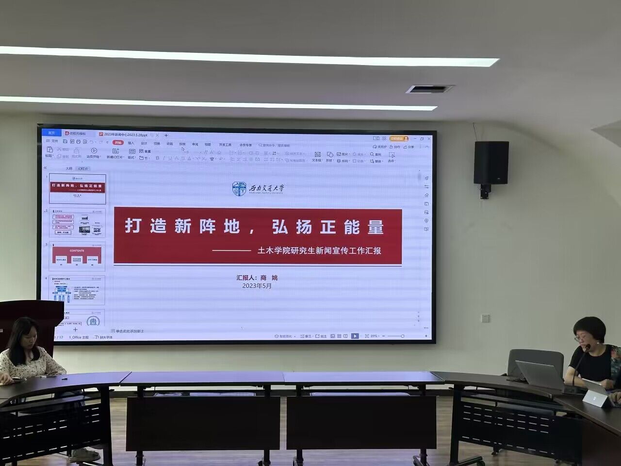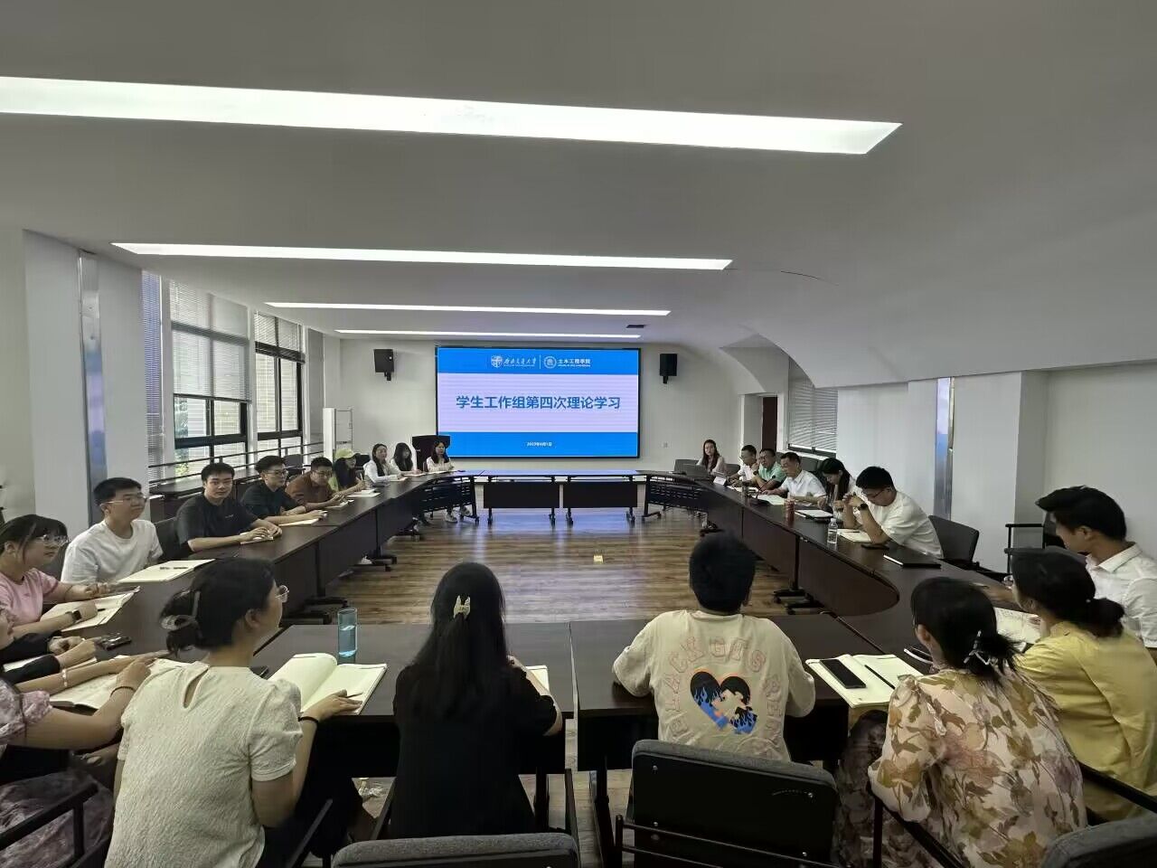 刘萍老师对新入职的辅导员表示欢迎,并代表学院团委对即将离职辅导员的付出表达由衷感谢。根据学年学生组织工作情况的汇总情况,刘萍老师对学院学工组的分块工作和团学组织工作进行了重新安排。