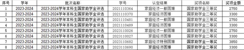 【资助】2023-2024学年色情av影片 国家助学金评选补充公示