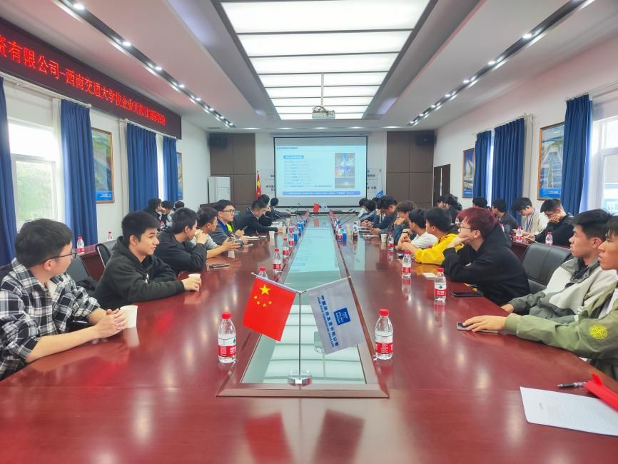 参观施工现场后,学院师生回到项目部会议室,与企业进行座谈交流。市域铁路成都至德阳线指挥部副指挥长蔡华栋作为校友代表,为同学们分享了自己对于目前建筑行业看法。他表示,只有大家真正的来到施工现场感受一下,才能做出属于自己的判断,更好的规划自己的大学生活。随后,同学们纷纷提出自己对于就业方面的想法和疑惑,公司2023届校招员工们以自己的个人感受为例,为同学们答疑解惑,大家受益匪浅。