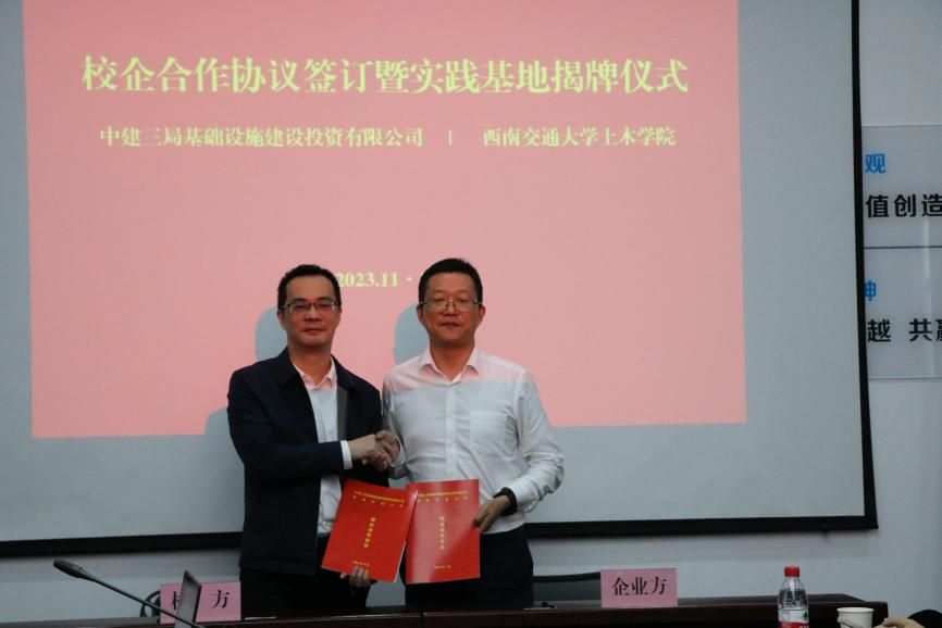 联合中建三局基础设施建设投资有限公司签订校企合作协议暨开展企业开放日活动。