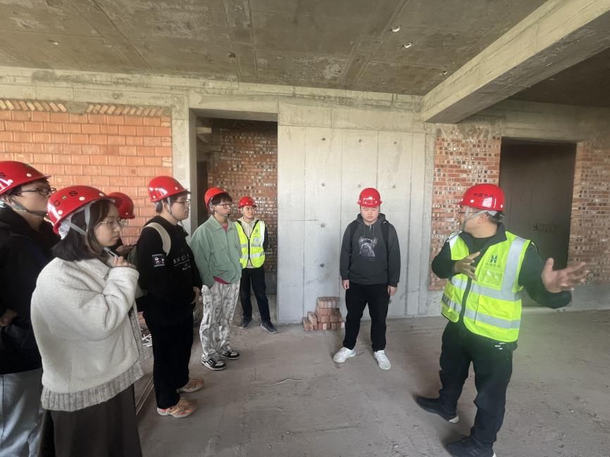 下午两点,学院师生一行人前往中国华西四川机司麓湖生态城C28项目。抵达项目现场后,项目经理熊伟为学院师生简要介绍了工程概况,并带领师生们进行现场观摩。针对同学们提出的疑问,熊经理细心的为大家解答。