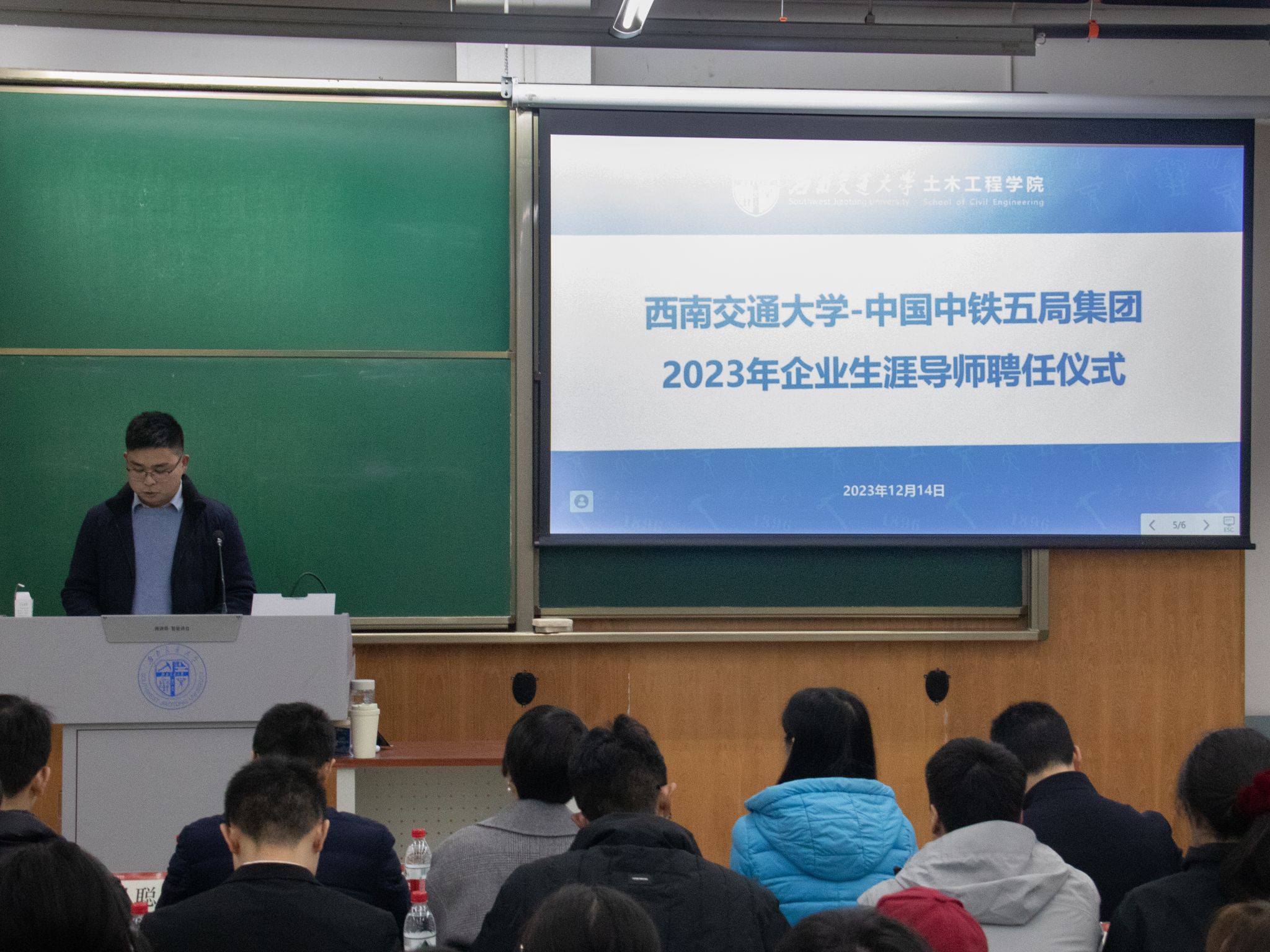 中铁五局成都公司人力资源部部长曾垂勇以自己的求职经历为铁道2023-02班分享了自己的经验,并希望同学们可以在大学的学习探索中,明确自己的职业规划,要明确自己的目标,不要盲目跟风,要根据自己的兴趣、能力和职业发展方向来选择适合自己的职业。