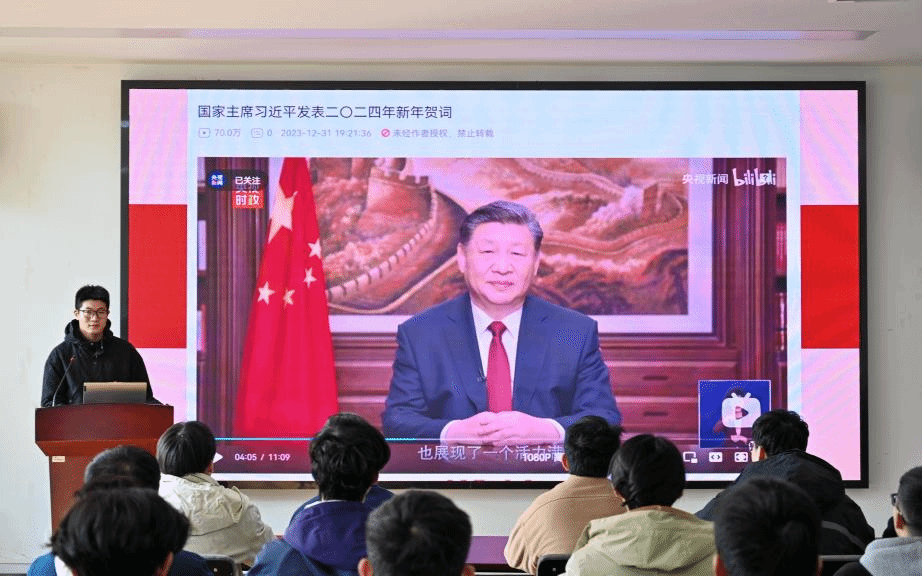 随后,同学们集体观看习近平总书记2024年新年贺词视频。习近平总书记温暖的话语、殷切的期待,让党员们更加坚定理想信念,激扬奋斗豪情。视频结束后,同学们都表示,要更加紧密地团结在以习近平同志为核心的党中央周围,满怀对未来的信心,迈着坚定的步伐,在追梦圆梦的征程上大步向前。