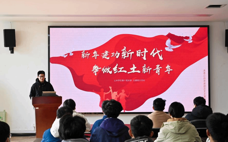 为深入贯彻学习学院第五次党代会精神,发扬“红土”精神,2024年1月4日,土木学生第十党支部开展“新年建功新时代,争做红土新青年”主题党日活动。