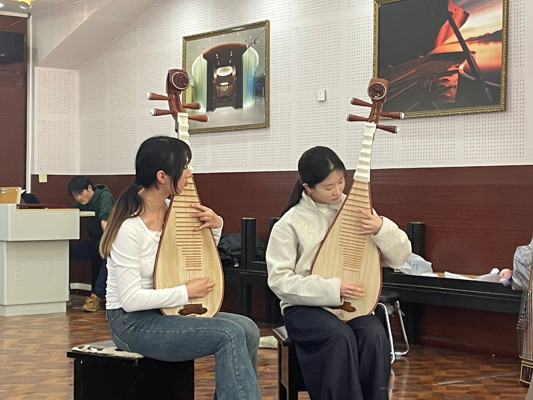 最后,王傲婷和冯木垚同学为学员们介绍了琵琶的起源与发展。琵琶以其宽广的音域和独特的音色,成为中华音乐文化中的瑰宝,其音色明亮而富有穿透力,能够表现出激昂的情感和强烈的节奏感。琵琶的曲目广泛,既有传统的民间歌曲,也有现代的创作作品,展现了其与时俱进的品质和创新精神。两位同学为学员们带来的曲目《金蛇狂舞》,激昂的旋律、深情的演绎,让学员们感受到了琵琶音乐的独特韵味和无限魅力。