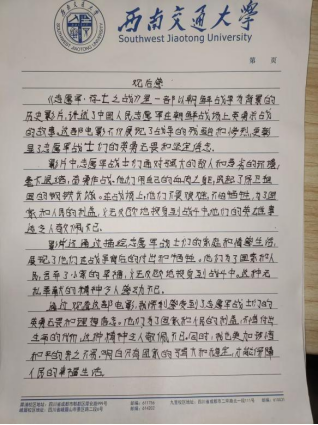 高庆龙同志感慨道:“这部影片让我对抗美援朝精神有了更加深刻的理解。作为新时代的青年学子,我们要铭记历史,不忘初心,将革命前辈的奋斗精神内化于心、外化于行,不断提升自我综合素质与能力水平,为祖国的繁荣富强贡献力量。”