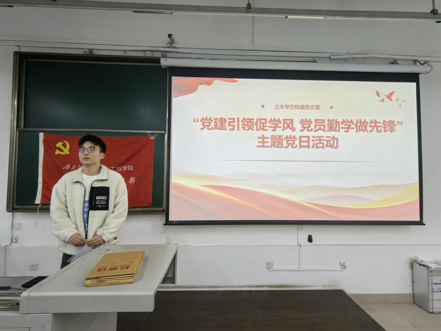 为深入学习贯彻习近平新时代中国特色社会主义思想,全面贯彻落实党的二十届三中全会精神、全国教育大会精神,扎实推进学风建设,涵养优良校风学风,传承发扬“严谨治学,严格要求”优良传统,土木学生铁道党支部积极响应学校倡议,组织开展了“党建引领促学风,党员争先创先锋”主题党日活动,充分发挥党员先锋模范作用,开展学习经验分享,践行诚信考试承诺。