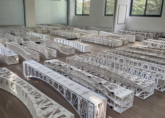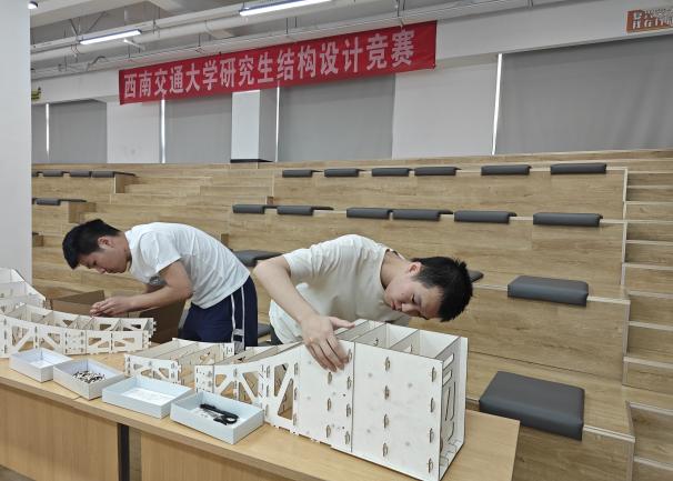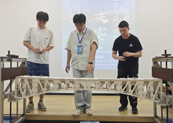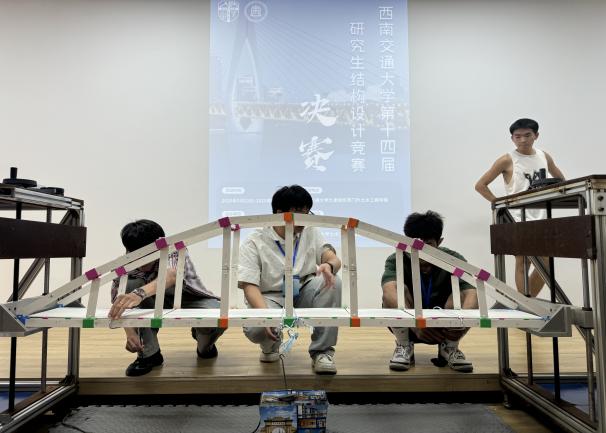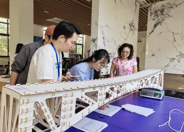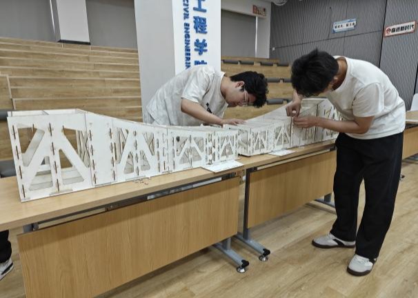 本次竞赛以“单跨桁架梁、单跨拱桥承重”为主题,设计制作总跨度2至2.1米、总重量不超过4500克的单跨拱桥模型,共吸引300余名硕博研究生参赛。决赛阶段分为模型拼装与检测、加载测试以及选手答辩三个阶段。重点考察结构承载能力、团队协作能力与BIM正向建模能力,其中BIM建模为本届竞赛新增内容。