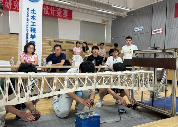 6月3日下午2时,评审环节正式启动。评委老师们从模型精美度、设计说明书理论深度、答辩PPT逻辑呈现等维度进行专业评分,并结合现场加载测试数据展开全面严谨的综合考量。历经多轮审慎评议,赛事严格遵循规则与标准,最终决出11组获奖作品,具体名单详见文末。