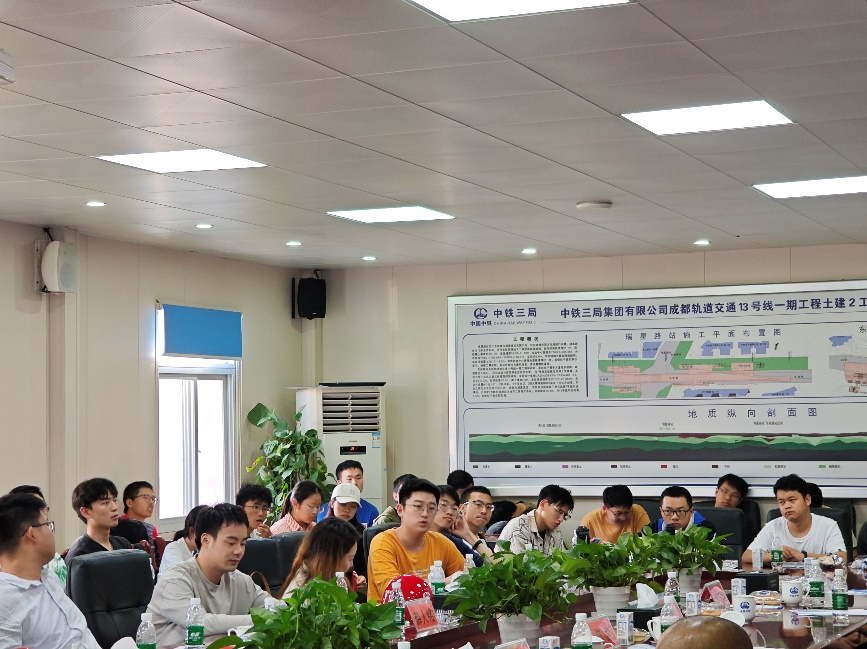 桥隧公司副总经理王熙为同学们介绍了中铁三局桥隧公司的相关情况,学院李裕老师介绍了学院学生概况,项目总工程师石鸿介绍了本次所参观的盾构项目施工技术。