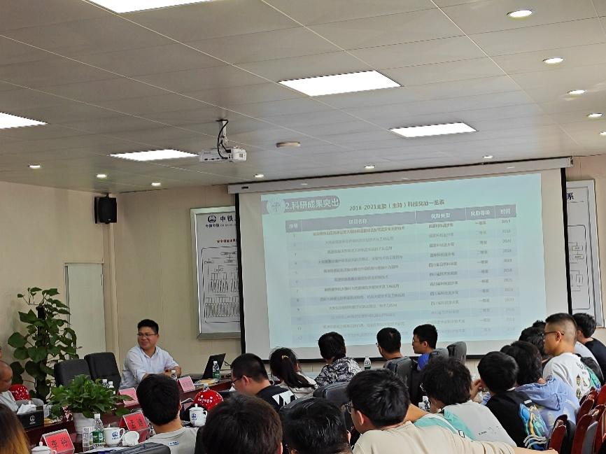 参观结束后,同学们回到会议室开展学生座谈会。中铁三局桥隧公司人力资源部副部长李进坤为大家介绍了现场嘉宾领导,中铁三局桥隧公司副总经理王熙、人力资源部部长王宇元、项目总工程师石鸿、人力资源部业务主管陈波,学院辅导员李裕、薛人铭、黄静汶、张进、孟迪老师出席座谈会。
