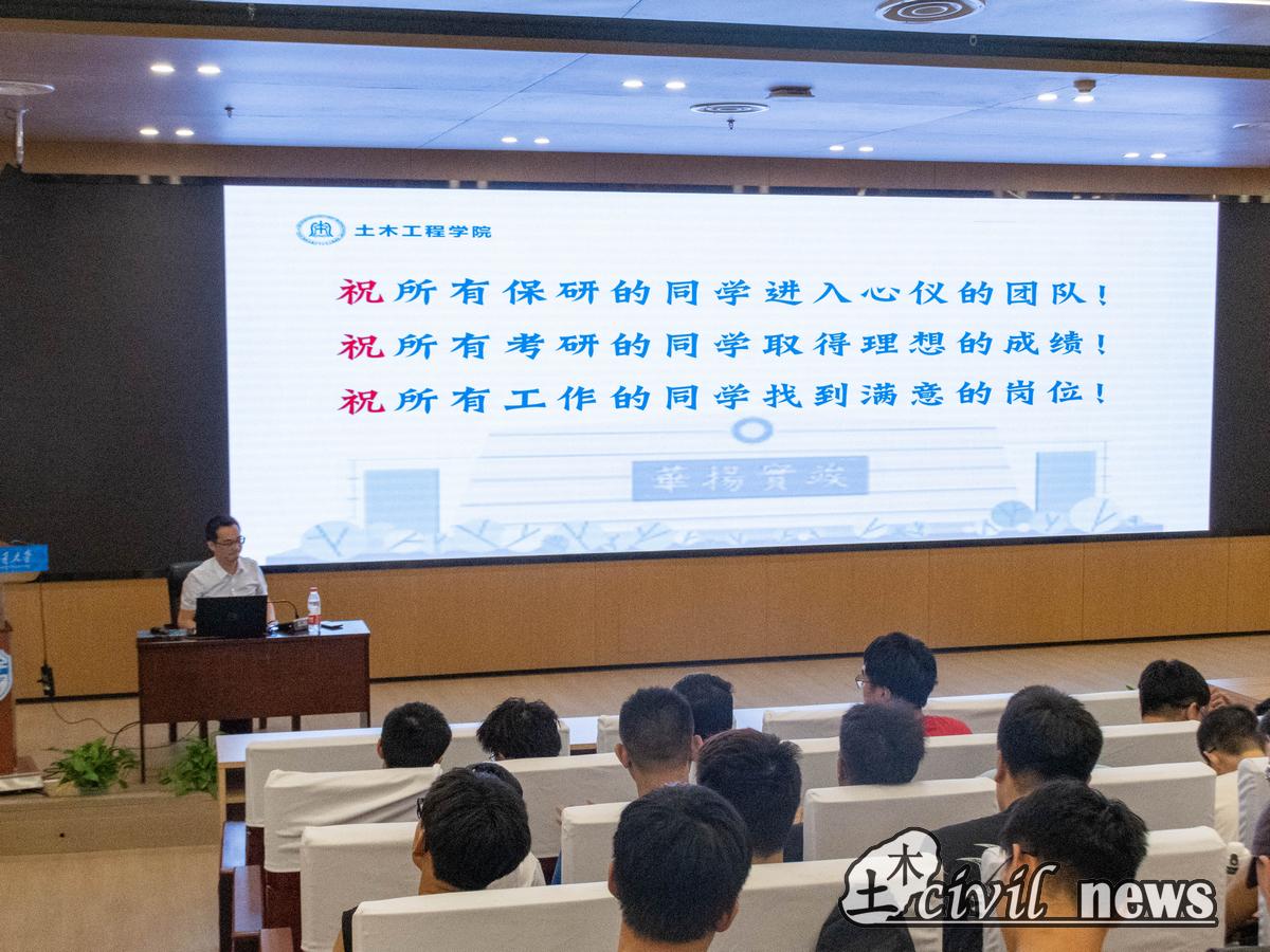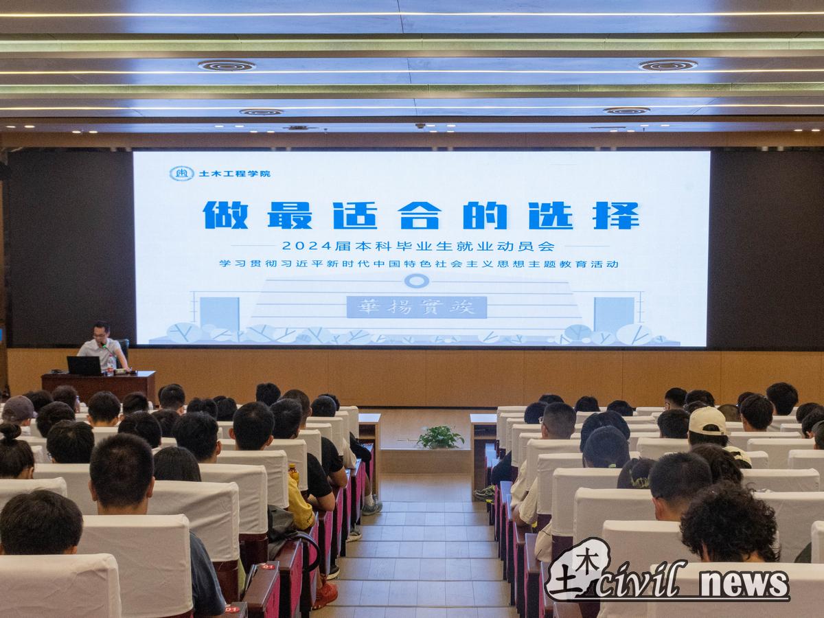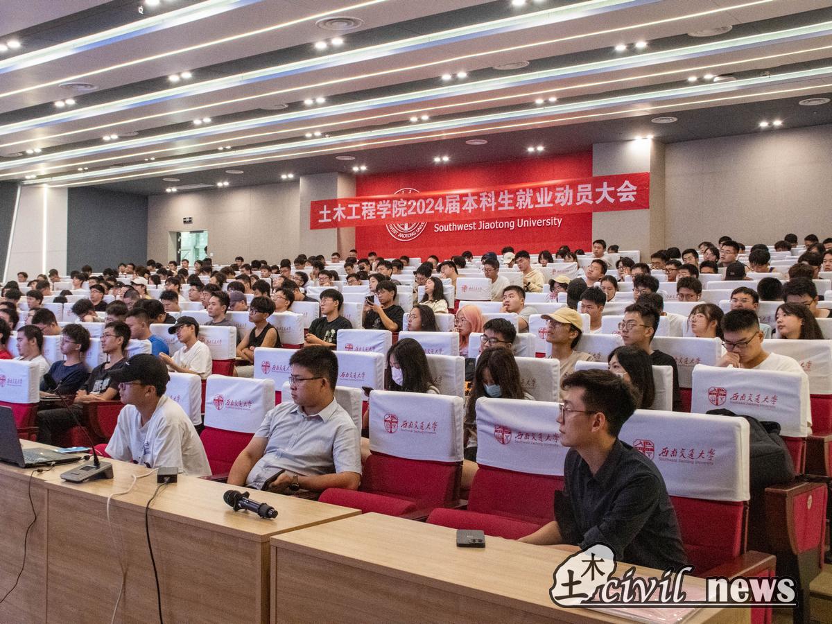 动员会上,周曦副书记向同学们传达了习近平总书记对青年一代寄予殷切期望。广大青年学生要以实现中华民族伟大复兴为己任,在中国式现代化建设中挺膺担当。周曦副书记为大家介绍了“一带一路”倡议、川藏铁路全面开工建设、成渝地区双城经济圈等一系列国家战略以及八大建筑央企就业相关问题。他强调,学生应当立足于土木行业的实际情况,充分考虑其行业特殊性并结合自身实际情况做出理性判断,做出最合适的选择。他指出,作为新时代高校学生要胸怀国之大者,要筑牢理想信念根基,树立和践行正确就业观,发扬担当和斗争精神。