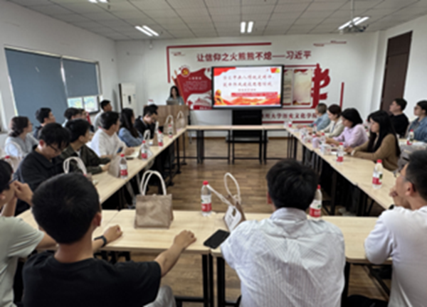 优秀硕士党员代表宋雯钰同学则对党的二十届三中全会精神进行了领学。两位代表的讲解内容详实、分析透彻,使在场党员对相关政策精神有了更加深刻的领会。
