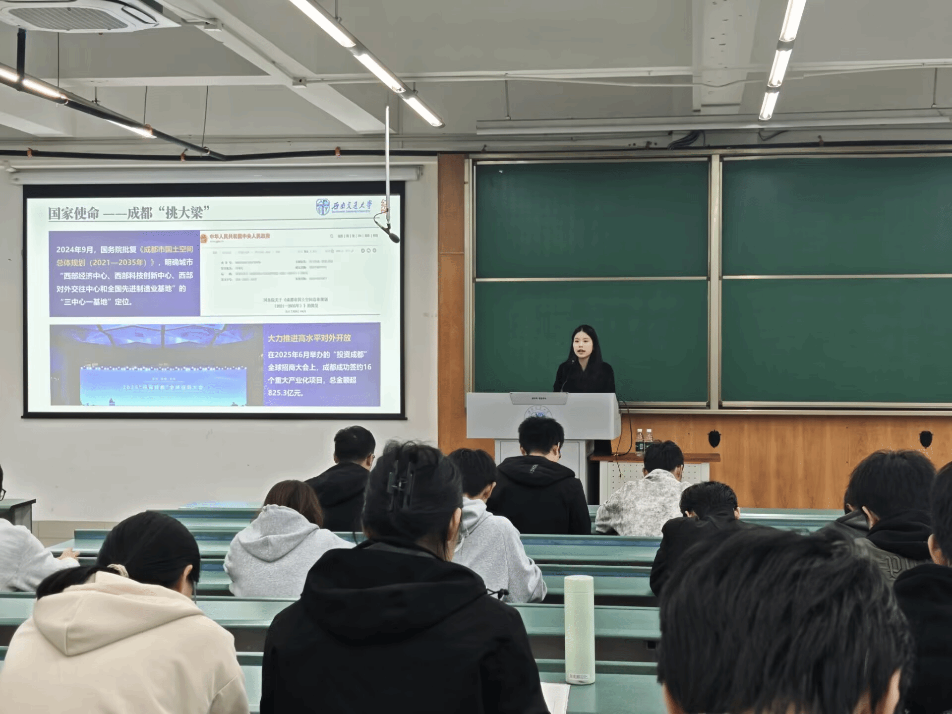 在轨道交通领域的深厚科研积累,生动展现了高校在川藏铁路攻坚等国家重大工程项目中所展现出的责任与担当。她还以成渝地区为例,具体讲述了近五年来成都市在构建“空中丝绸之路+国际陆海联运”双走廊方面所取得的显著成果。