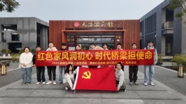 11月29日上午,支部成员赴成都市新都区天府家风馆开展“红色家风润初心时代桥梁担使命”主题党日活动。抵达场馆后,全体成员佩戴党员徽章,在馆前广场以支部旗为背景整齐列队合影,定格此次家风学习的珍贵起点。