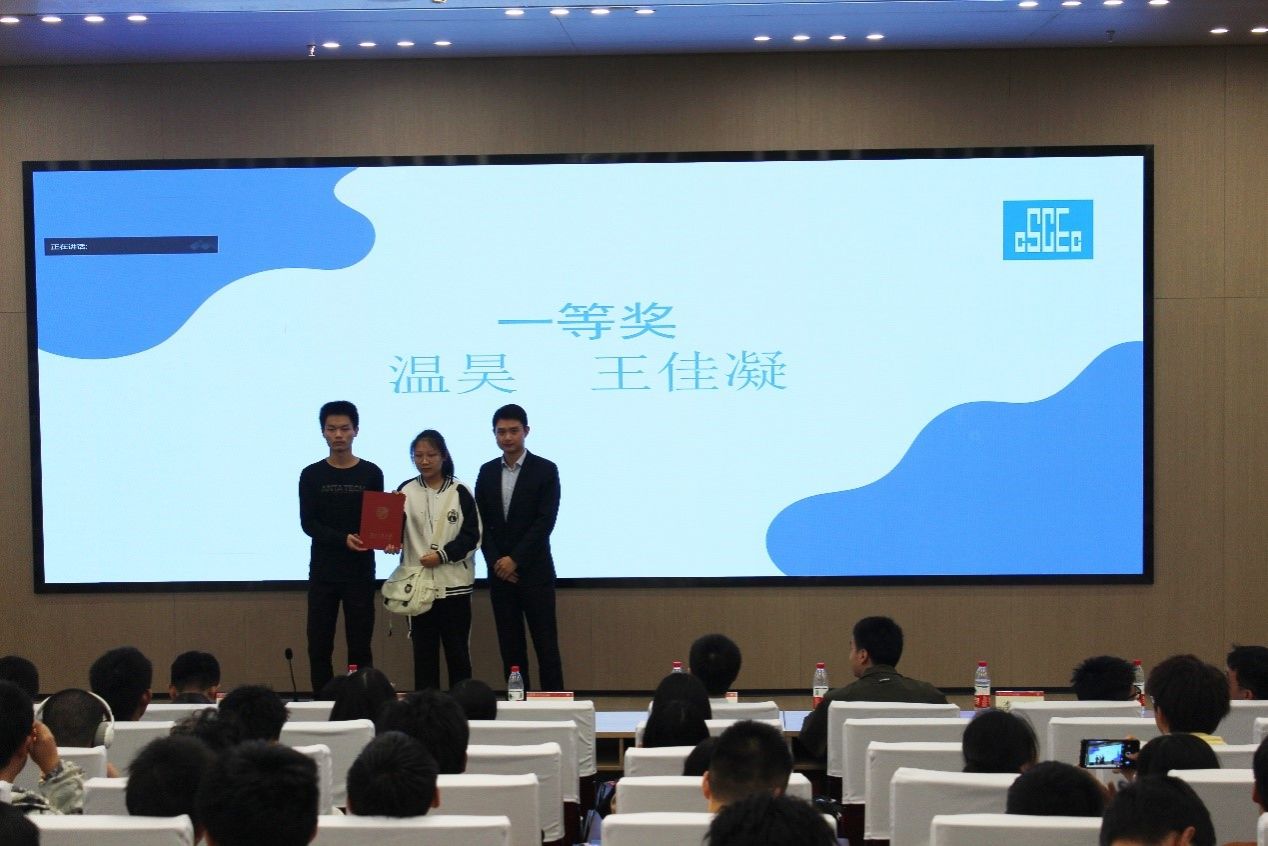 经过激烈的角逐,主持人宣布了“桥见未来”新生纸桥模型设计与制作竞赛的校级获奖名单。张炳宏总工程师、姚军专员、李江怀老师、薛人铭老师、贾璇琦老师、谢宇清老师为获奖队伍颁发荣誉证书。现场气氛热烈,同学们为获奖队伍送去掌声与欢呼。