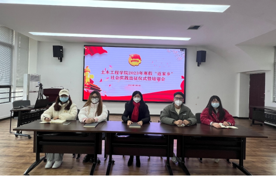 为使实践队员全面认识社会实践,学院团委于2023年1月5日下午15:30举行了出征仪式暨专题培训会,学院团委书记刘萍老师、辅导员柯妍、黄静汶、李阳阳老师出席会议,本次仪式由刘玉琳老师主持并进行专题讲述。