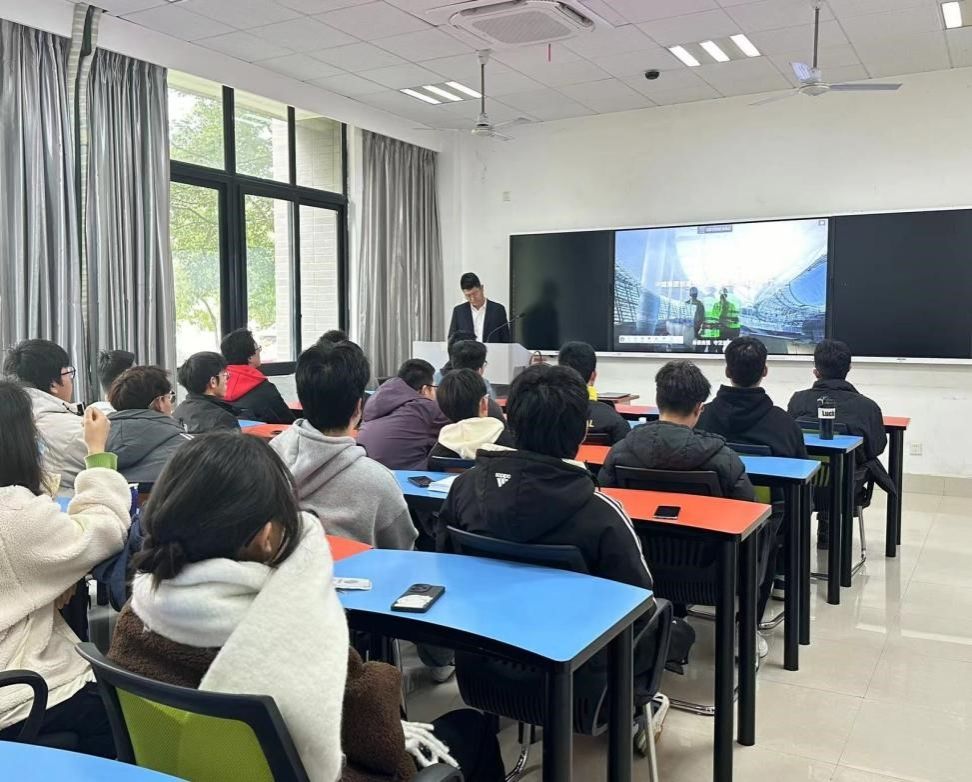 首先,康生导师播放了一段视频,以中铁集团的面试过程和入职流程让同学们了解到一般的求职过程。视频中还介绍了中铁集团的方方面面,同学们看到以后,都对自己未来可能的职业生涯充满期待。
