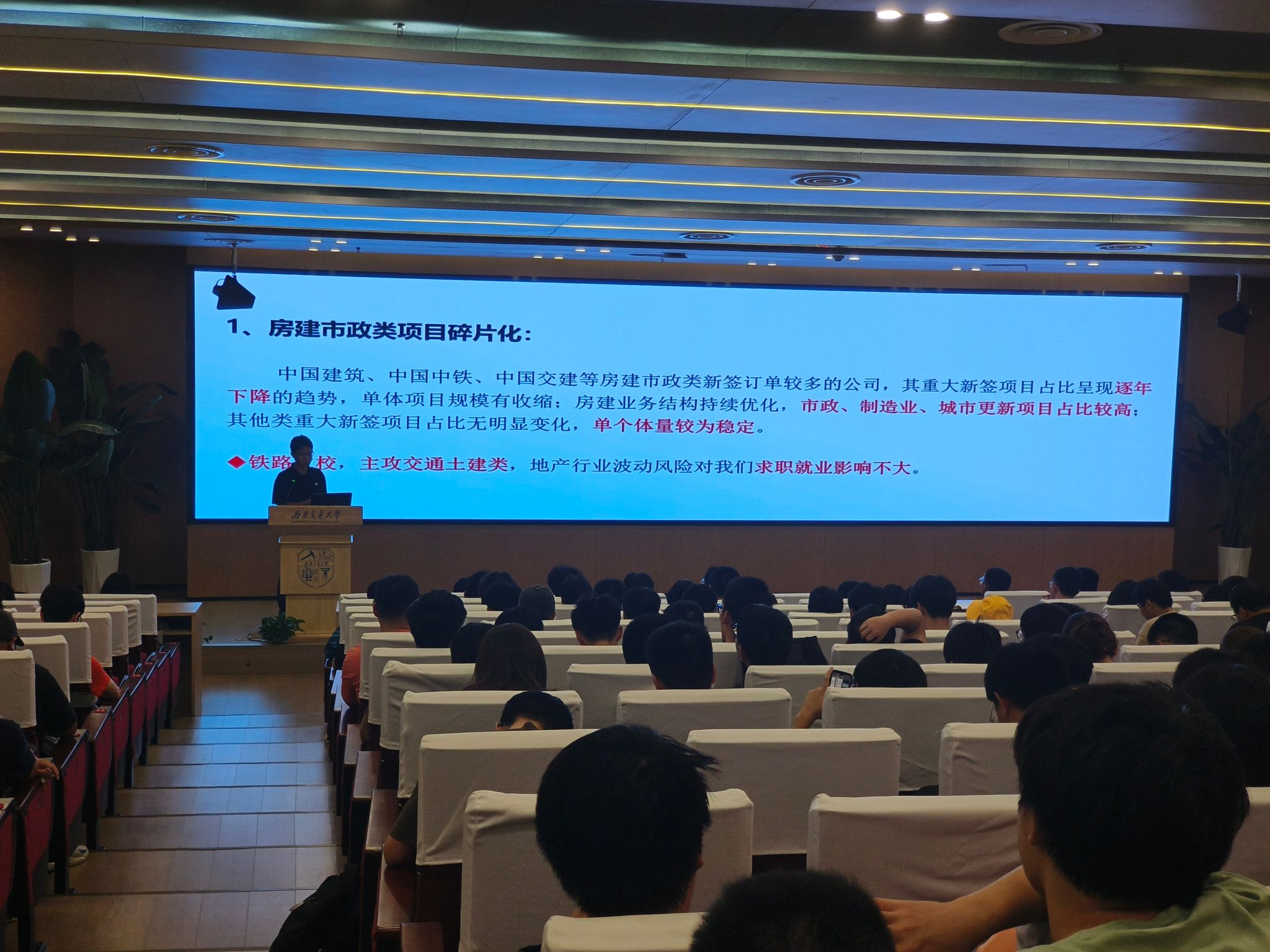 就业是民生之本,是社会稳定之基,更是经济发展的晴雨表。在动员大会开始之际,李江怀老师就向大家分析了当前的就业趋势,在桥梁,地下,隧道,土木+人工智能等方面呈现多元化毕业去向。