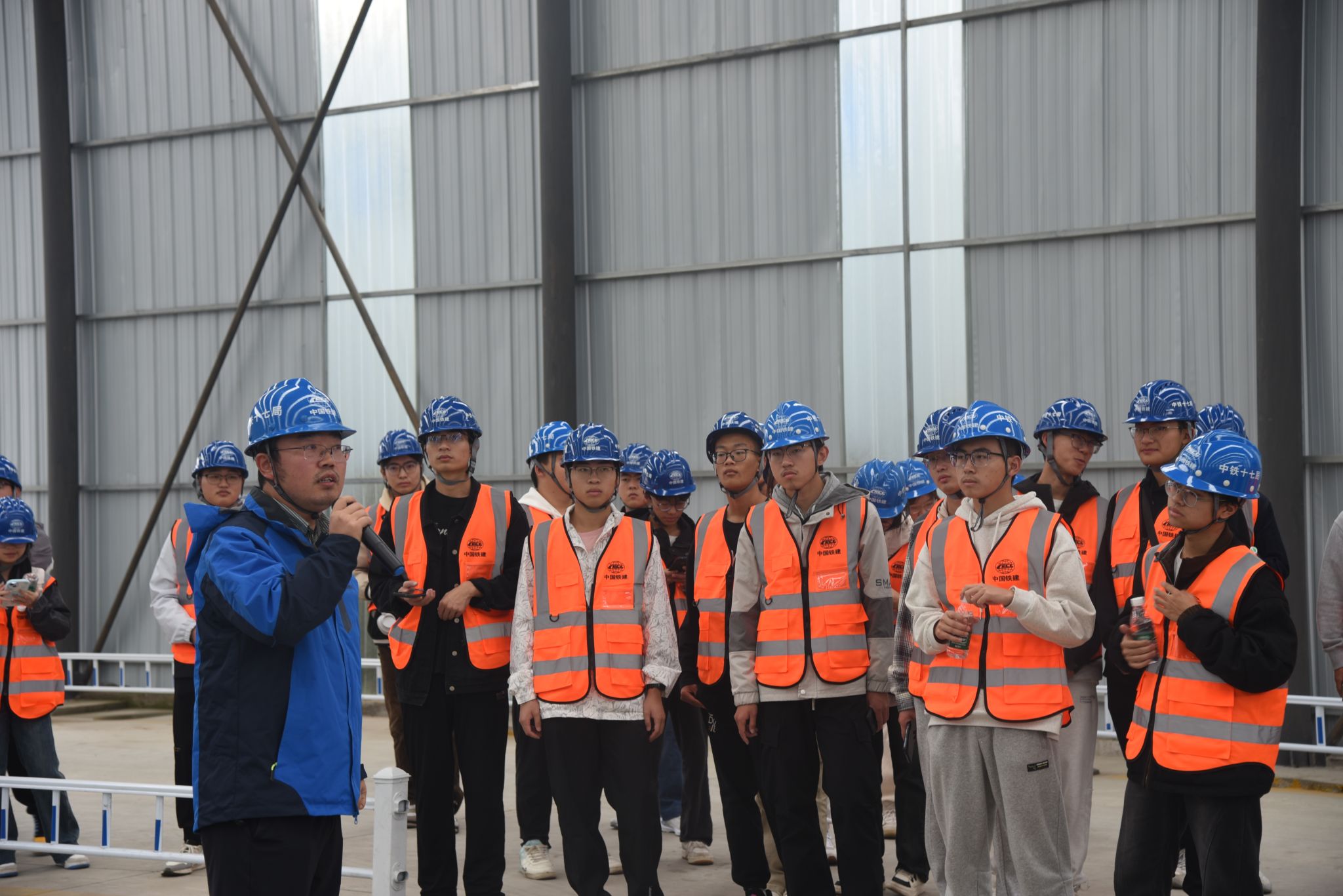 活动当天,师生一行三十余人,准时集合并乘坐大巴前往位于成都市龙泉驿区的成渝中线铁路成都枢纽成都站改建及相关工程CYDJS-1标段。在到达目的地后,项目负责人对同学们表示了热烈的欢迎,并详细介绍了工程概况、施工进度、技术难点及解决方案等方面的内容。