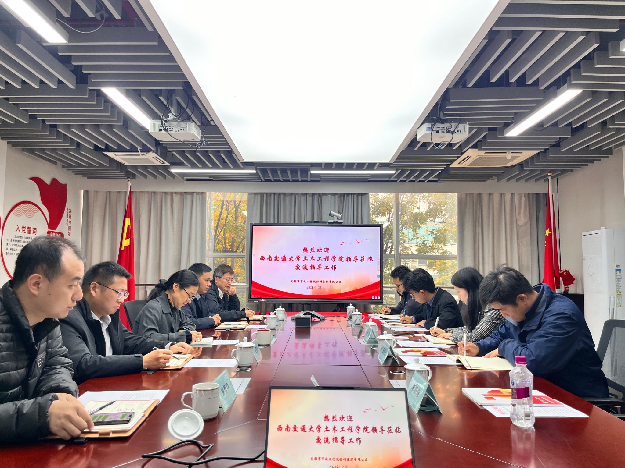 党委副书记刘萍带队前往成都市政院开展访企拓岗专项行动。成都市政院副总经理魏泽丽、市场经营部部长杨彭、设计二院总工程师邓雪峰、厂站及轨道设计事业部部长、组织人事部招聘负责人朱星宇参加座谈。