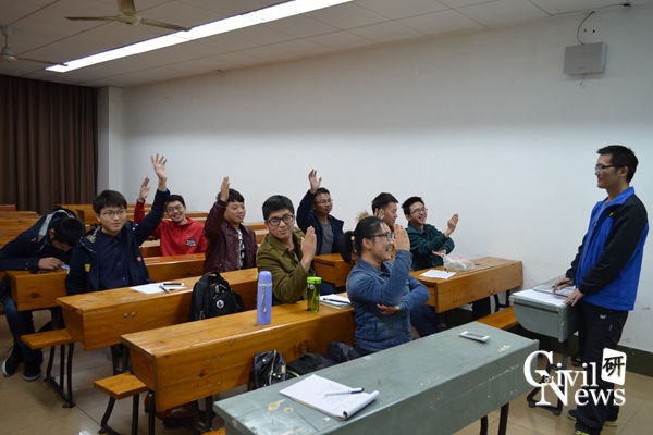 班会第二项议程是该班来自市政工程、防灾减灾、交通运输三个不同专业方向的同学相互交流,分享自己开学以来所学所感。市政方向关于创建海绵城市的理论知识,防灾方向用以管理地理信息系统的ArcGIS软件,交运方向用以开展非线性有限元分析的abqus软件和路基路面专业知识,让大家获益匪浅。