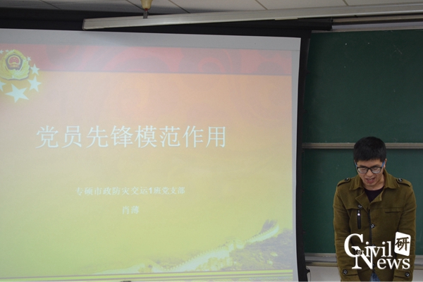 最后,支部书记陈秒单同志做了总结发言:学生党员要敢为时代先锋,学生党员要敢做他人模范,因为,党的明天看我们,而我们又青春正当年。