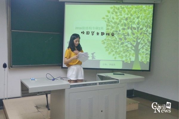 2017年6月26日下午,土木学院研究生2016级专硕结构工程1班在九里校区逸夫馆4305A教室举办“校园贷”主题班会。班会由该班班长李依芮主持,班级全体成员参加了班会。