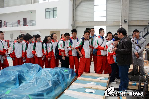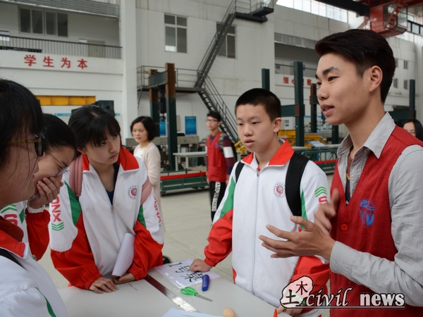 欢迎仪式结束后,树德学子分两组进行参观交流与创新实践竞赛。同学们分别参观了陆地交通地质灾害防治技术国家工程实验室、风工程四川省重点实验室、流体力学实验室、BIM工程研究中心、交通实验中心、机车博物院等,并参与了由土木学院设计主办的“杯”模型制作及振动试验竞赛,在规定时间内使用组委会提供的材料制作一个鸡蛋托举物,通过振动加载测试。若最终模型不垮塌、解体、倾倒,鸡蛋也不掉出,则视为成功。