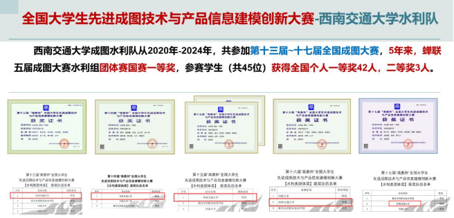 水利队连续参加了第十三至十七届先进成图大赛,成绩如下: