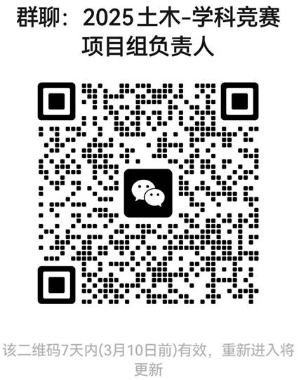 请有意承担赛事负责人的老师加入“2025土木-学科竞赛”微信群,如下图所示(该微信群二维码在3月10日前有效)。
