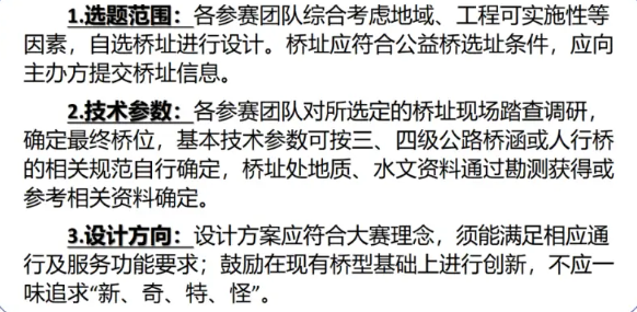 由各高校面向在校相关专业学生组建团队参赛,每支队伍学生3~5名,其中需包含土木工程研究生或高年级本科生至少一名,指导老师1~2名。每位学生只允许参加一个团队