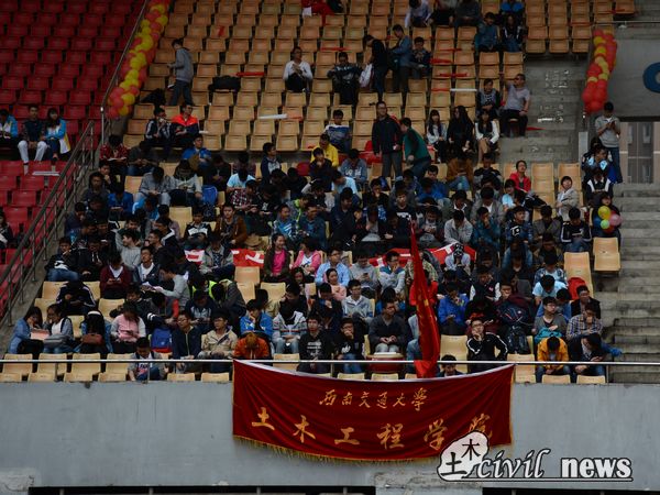 第二小组上场时,土木学院座位区传来了响亮的加油声。土木学院学生刘楚强在第二小组中,他是土木学院第一位上场比赛的选手。上场之初,他不断做着热身运动,脸上挂满了认真之色。发令枪响的那一刻,他快速助跑,冲了出去,土木座位区掌声雷动,呐喊不绝。最终他不负众望,以小组第二的优异成绩出线,取得了参与决赛的资格。同样,同为甲组的谢达禧也取得了决赛资格。