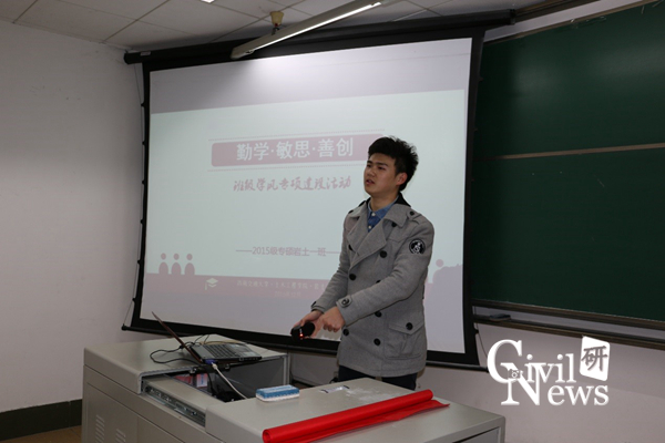 12月5号晚上7点,在逸夫馆4304A,15级专硕岩土1班召开班级学风专项建设主题班会。班会由班长姜文雨主持,专硕岩土1班同学参加了此次班会。班会主要内容为“勤于学习,善于创新,善于思考”,创建良好的班级学风。