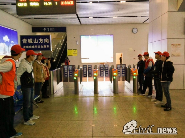 土木青协志愿者的及时而热心的帮助下,很快通过了检票。此外,在旅客检票时,出站口的部分检票机突然出现故障无法检票,使得部分旅客一时无法出站,土木青协的志愿者便迅速上前向旅客们询问相关情况,在明白问题所在后,就立即向保安汇报,在保安和志愿者们的共同帮助下,旅客们很快便从一个临时的出站口有序离开,高铁站站台的秩序也因此而得到恢复。