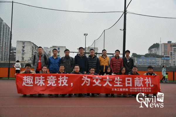 12月6日上午,在九里校区体育场,2015级桥梁专硕二班与桥梁学硕一班党支部一起举行了趣味竞技的活动,为交大生日献礼。两个班的同学都积极的参加了本次活动,活动非常的有趣,给大家平淡的生活带来了很多欢乐。
