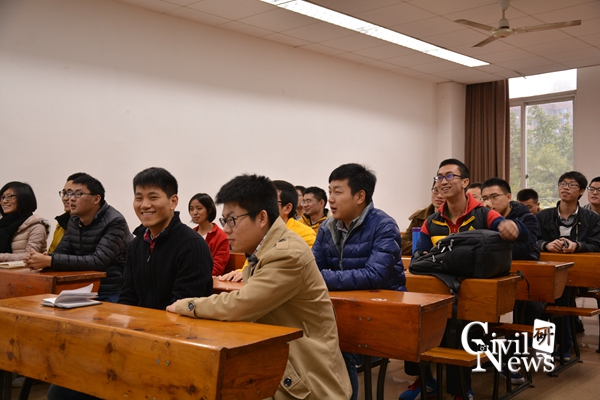 接着,班长邀请陈富强师兄给大家传授学习经验。他师从唐茂林,沈锐利。成绩非常优秀,精通各种软件,尤其bnlas,现在工作已签约了上海市政。师兄在研二期间一直呆在工地,可谓“工地之星”。他给同学们介绍了很多自己在工地上的经验,在工地上对人的磨练能让人成长很多,也能学到非常多的知识。虽然辛苦,但是师兄认为这是值得的。他还讲到研究生期间的学习,知识的获取不单单从课程中,还要主动从实际经验中学习。