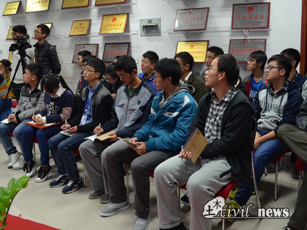 在一片掌声中,刘教授带着微笑入场。一切准备就绪后,主持人张蓝月宣布活动正式开始。主持人首先谈到,目前我国以“四纵四横”为主骨架的高速铁路网已全部开工建设。对于高速铁路来说,无砟轨道是非常重要的组成部分,而刘教授正是这个领域的专业人才,同时也在其他多个方面颇有建树。于是,主持人请刘教授谈谈轨道工程这一领域在未来的发展趋势和可能会面临的机遇和挑战。刘教授说,我们国家在轨道工程方面还有很大的发展空间,在技术研究上还有很长的路要走。所以,轨道工程并不会随着我国近几年经济增速放缓而变为夕阳产业。