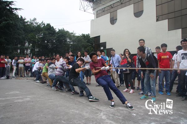 9月23日中午12点半,土木学院2015级全体研究生在詹天佑体育馆广场进行了激烈的“众志成城”拔河比赛。